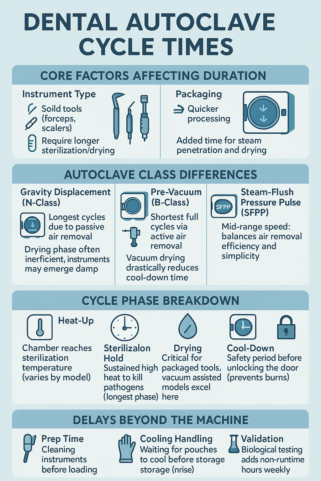 여기에 대한 분석이 있습니다. 치과용 오토클레이브 실제적인 요소에 초점을 맞춘 사이클 시간: